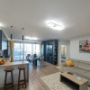 Compartimentarea este semidecomandata, suprafata utila este de 67mp. si se prezinta astfel: hol, baie, bucatarie open space cu livingul, doua dormitoare si balcon de 5mp. Este situat in zona foarte buna, aproape de statii de mijloc de transport in comun si magazine. Apartamentul se vinde complet mobilat si utilat, finisajele fiind moderne si de calitate superioara. Un loc de parcare subteran este disponibil la pretul de 8000€.