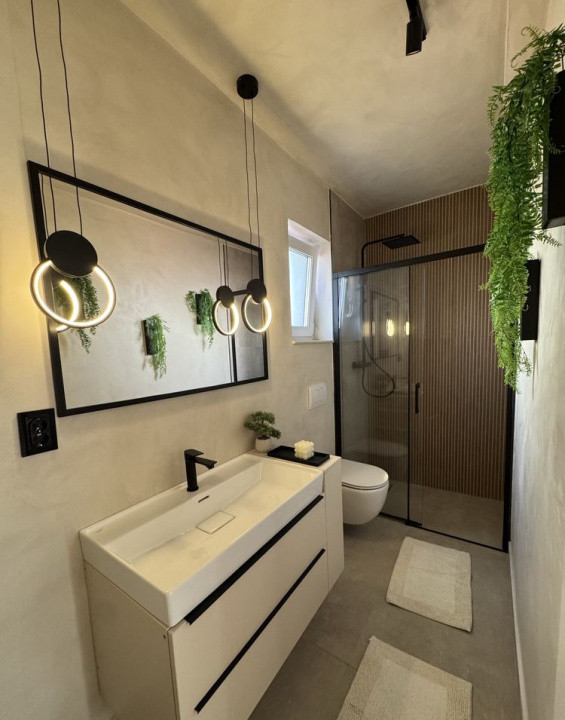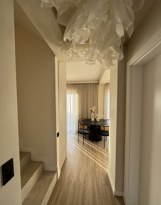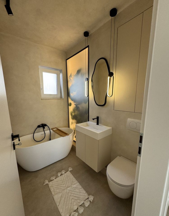 Dotări și facilități: Centrală termică proprie și încălzire în pardoseală (Purmo), Gresie și parchet de calitate superioară, Ferestre termoizolante cu geam triplu, Electrocasnice Electrolux și Beko, Bucătărie complet mobilată, cu LED-uri activate prin senzor și telecomandă, Baie principală cu obiecte sanitare premium (Geberit, cadă tip standing), Dressing spațios făcut la comandă.