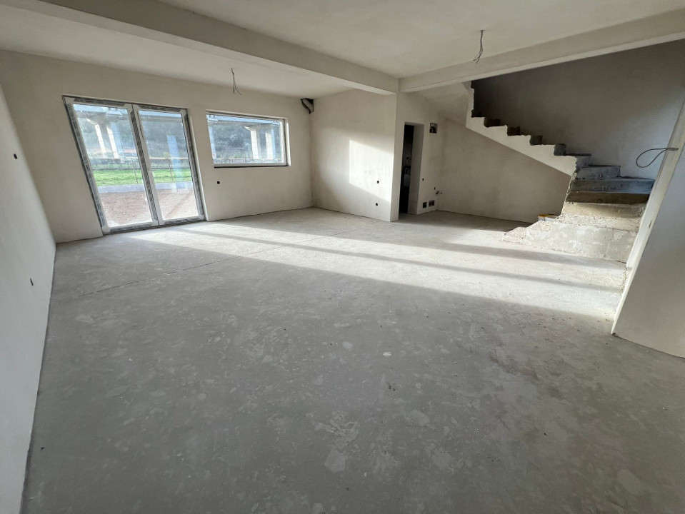 Va propunem spre vanzare o casa individuala semifinisata in Luna de Sus. Casa are suprafata utila de 110 mp si este dispusa astfel: la parter avem un living open space cu bucatarie din care se face iesirea in curtea din spate, o baie si un spatiu de depozitare situat sub scari iar la etaj avem trei dormitoare (unul dintre acestea cu baie proprie si dressing), 2 bai si un balcon de 4 mp. Proprietatea dispune de un teren in suprafata de 400 mp, se preda la stadiu de semifinisat cu incalzire in pardoseala, centrala termica pe gaz, geamuri termopan, curte amenajata cu gazon si gard realizat din tabla debitata. Pentru mai multe detalii sau pentru stabilirea unei vizionari nu ezitati sa ne contactati! ID extern: P228310