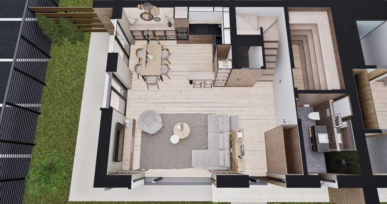 Va oferim spre vanzare o casă cuplată situată pe strada Sub Cetate, în liziera pădurii, la doar 200 de metri de Parcul Poligonului și 400 de metri de centura Florești – Cluj-Napoca. Proprietatea este amplasată într-o zonă exclusiv de case, pe un drum privat cu o lățime de 8 metri, prevăzut cu trotuar și iluminat stradal, oferind liniște și acces facil către principalele artere ale orașului. Casa este desfășurată pe parter și etaj, având o suprafață utilă de 120 mp și o compartimentare practică și luminoasă, formată din living cu bucătărie, trei dormitoare, trei băi și un spațiu generos pentru depozitare. La etaj se află o terasă tip balcon de 4,60 mp, iar podul este prevăzut cu fereastră Velux si are o suprafață de 60 mp, oferind posibilități multiple de utilizare. Curtea liberă, în suprafață de 110 mp, este ideală pentru relaxare sau amenajare ca spațiu verde. Imobilul se predă la interior cu glet, tâmplărie Kommerling Germania, centrală termică, încălzire în pardoseală și toate utilitățile pe poziții. Exteriorul este complet finisat, cu fațadă din cărămidă aparentă, tencuială decorativă, izolație exterioară din polistiren de 15 cm, trotuar, gard și grădină amenajată cu gazon rulou. Suplimentar, se pot achiziționa două locuri de parcare la prețul de 5.000 euro fiecare. Recepția imobilului este programată pentru noiembrie 2025, iar extrasul CF va fi disponibil în ianuarie 2026.