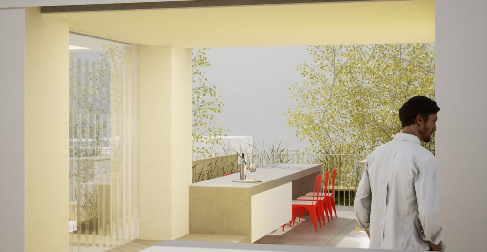 Proiectul autorizat prevede realizarea unui imobil modern, cu apartamente spațioase de aproximativ 100 m² utili fiecare, gândite pentru confort, lumină naturală și intimitate. Fiecare unitate dispune de compartimentări moderne și finisaje de înaltă calitate, iar în demisol sunt prevăzute garaje individuale și spații tehnice dedicate. Deasupra imobilului, proiectul include o terasă comună spectaculoasă, cu o suprafață de aproximativ 350 m², care va oferi viitorilor locatari o experiență unică de relaxare și socializare. Terasa este proiectată cu piscină panoramică, saună și jacuzzi, zonă lounge cu fire pit, bucătărie exterioară complet echipată și un spațiu generos de recreere cu priveliște amplă asupra împrejurimilor.