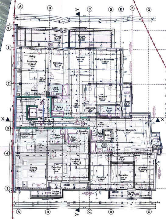 Regimul de inaltime pentru bloc: S+P+5E+ER avand o suprafata utila pe etaj de aproximativ 2226 mp pentru cele 24 de apartamente de 2, 3 si 4 camere la care se adauga un spatiu comercial la parter de aproximativ 100mp.